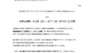 【重要なご連絡】塗り壁専用サイディング「納期」のご案内について