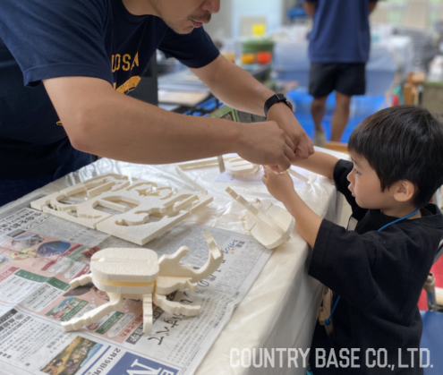 恐竜やカブトムシなどの模型づくりを子供たちと一緒に作りました。
