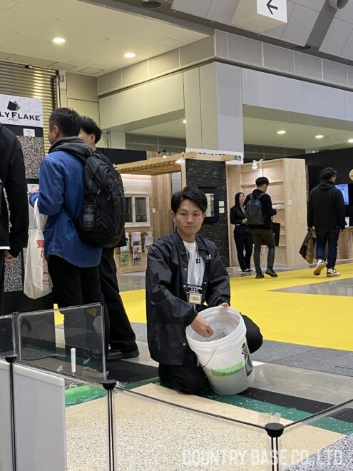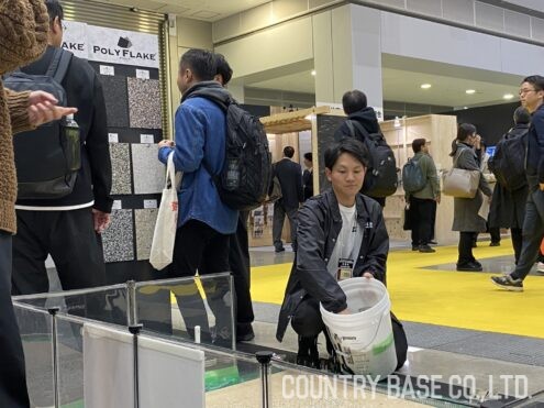 今回のイベントは、私たちはポリフレークという材料を紹介するブースで出展しています。