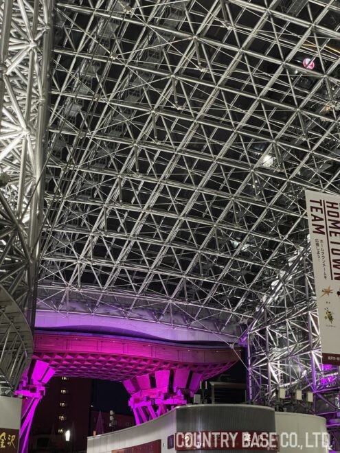 久しぶりに金沢駅に行ったときの光景。ライトアップの色も