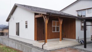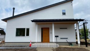 空とつながる――片流れ屋根が映える真っ白の塗り壁のお家