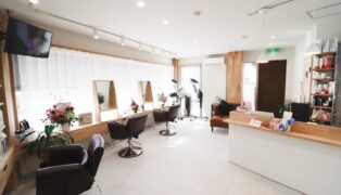 光と自然な風合い、ヒッキーウォールの質感を生かしたヘアーサロン。