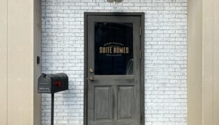 ホワイトブリックとヴィンテージドアが魅せる、レトロモダンなエントランスデザイン