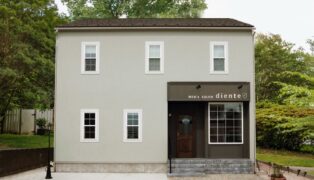落ち着いたトーンのSoiの外壁とアクセントカラー