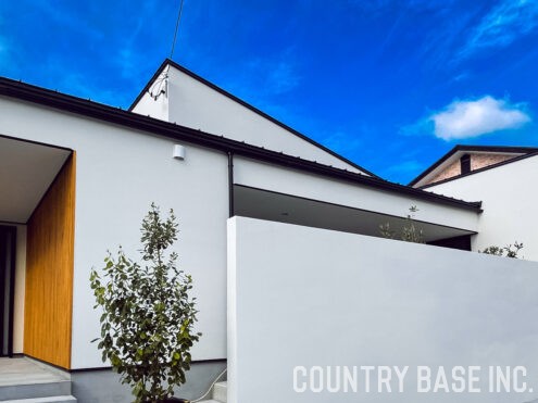スタイリッシュな平屋のお家と塗り壁の相性は抜群。