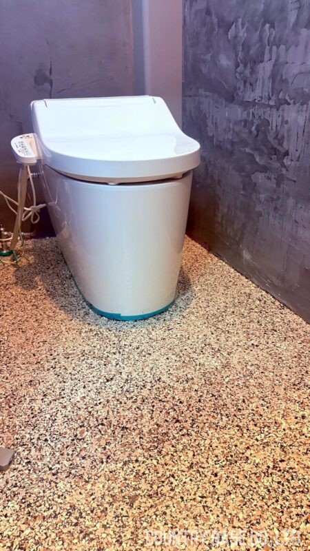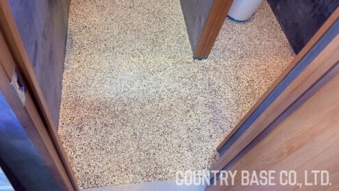 トイレだけでなく周囲の床までフレーク仕上げを施すことで、