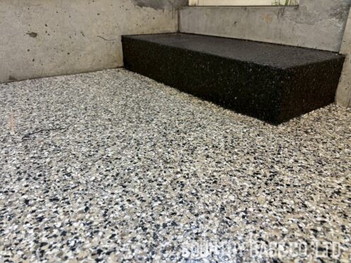 打ちっぱなしスペースにポリフレークを施工することで、