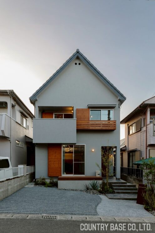 塗り壁ならではのマットな質感が外観をぐっと引き締めます。