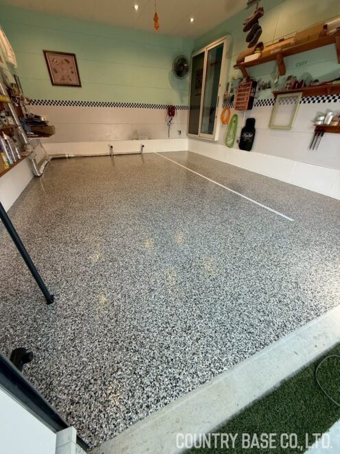 細かなチップの散りばめられた床は、見た目だけでなく、