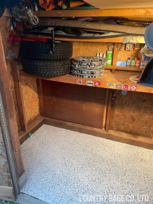 小屋の落ち着いた佇まいと自然に調和した床面です。