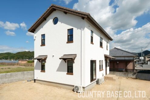 塗り壁ならではの優しい質感が、周囲の風景に溶け込みつつも、