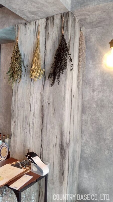 ひび割れや年輪の凹凸まで再現された表情が空間に温もりを与え、