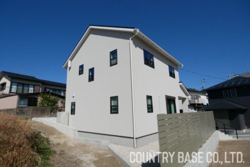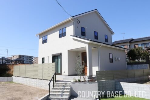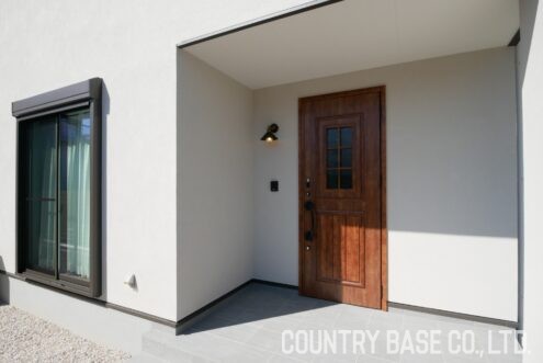 塗り壁ならではのマットな質感が建物全体に上品な統一感を与えています。