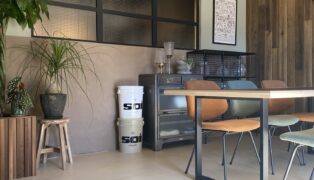 カフェに溶け込むやさしい左官仕上げ